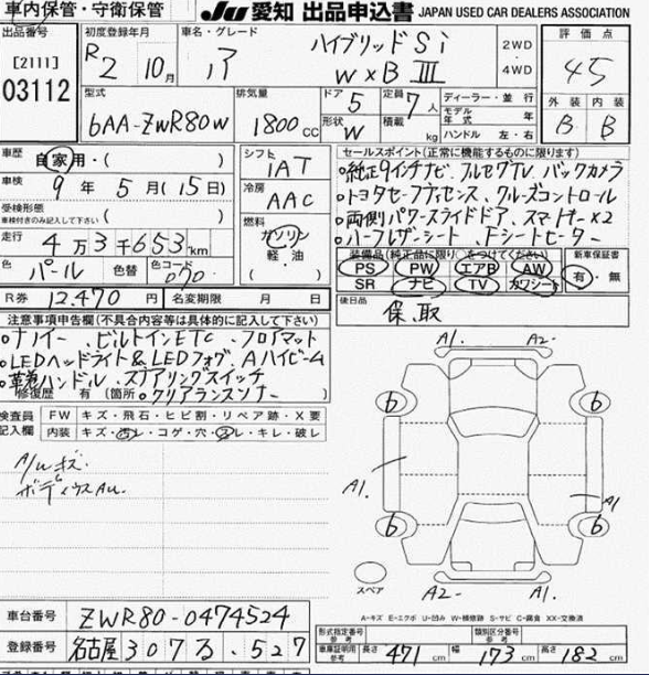 | Model Code | ZWR80 | Auction Grade | 4.5 |