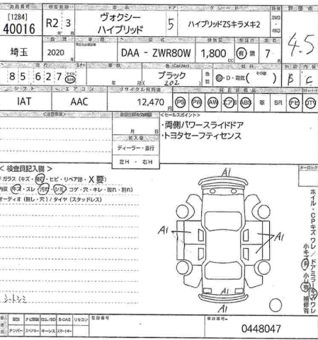 | Model Code | ZWR80 | Auction Grade | 4.5 |