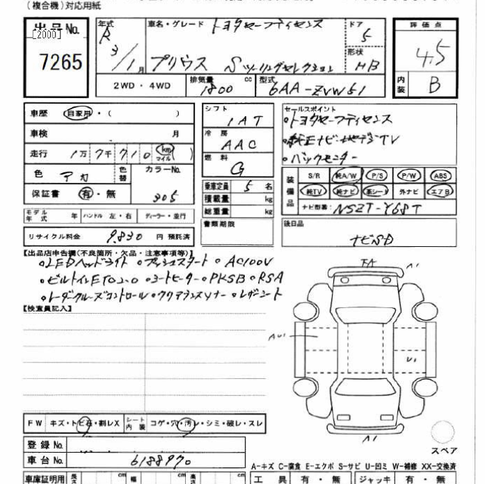 Model Code ZVW51 Auction Grade 4.5